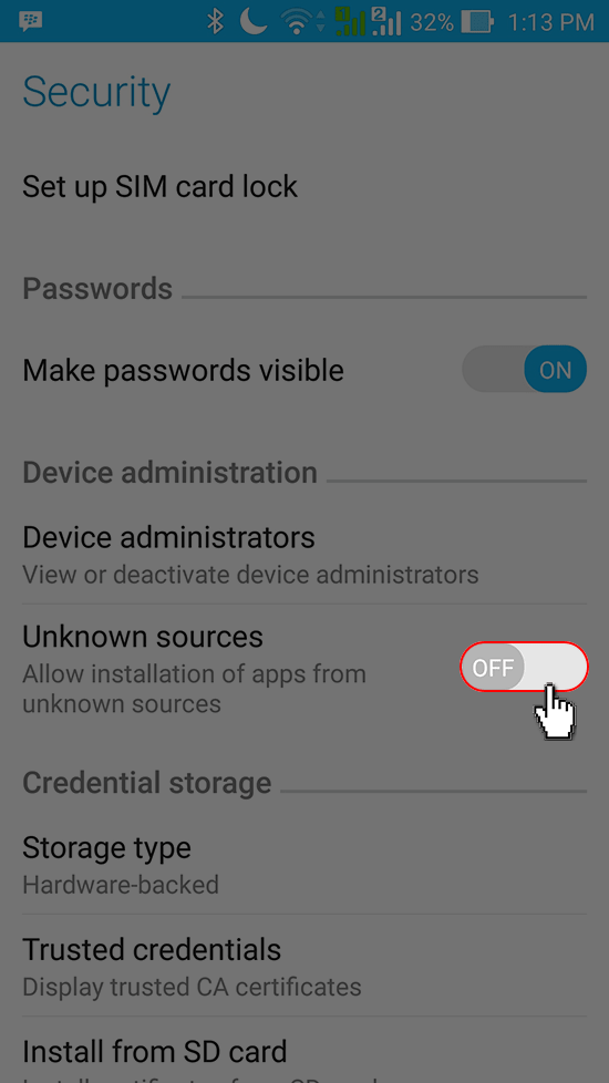 2. Jika sudah selesai, klik dan install langsung file MildCasino.apk, jika muncul keterangan Install Blocked, Pilih dan Klik “Settings”, setelah itu pilih “ Unknown Source” di bagian “ Security”, Centang/Klik pada bagian seperti yang dilingkari pada gambar dibawah ini.